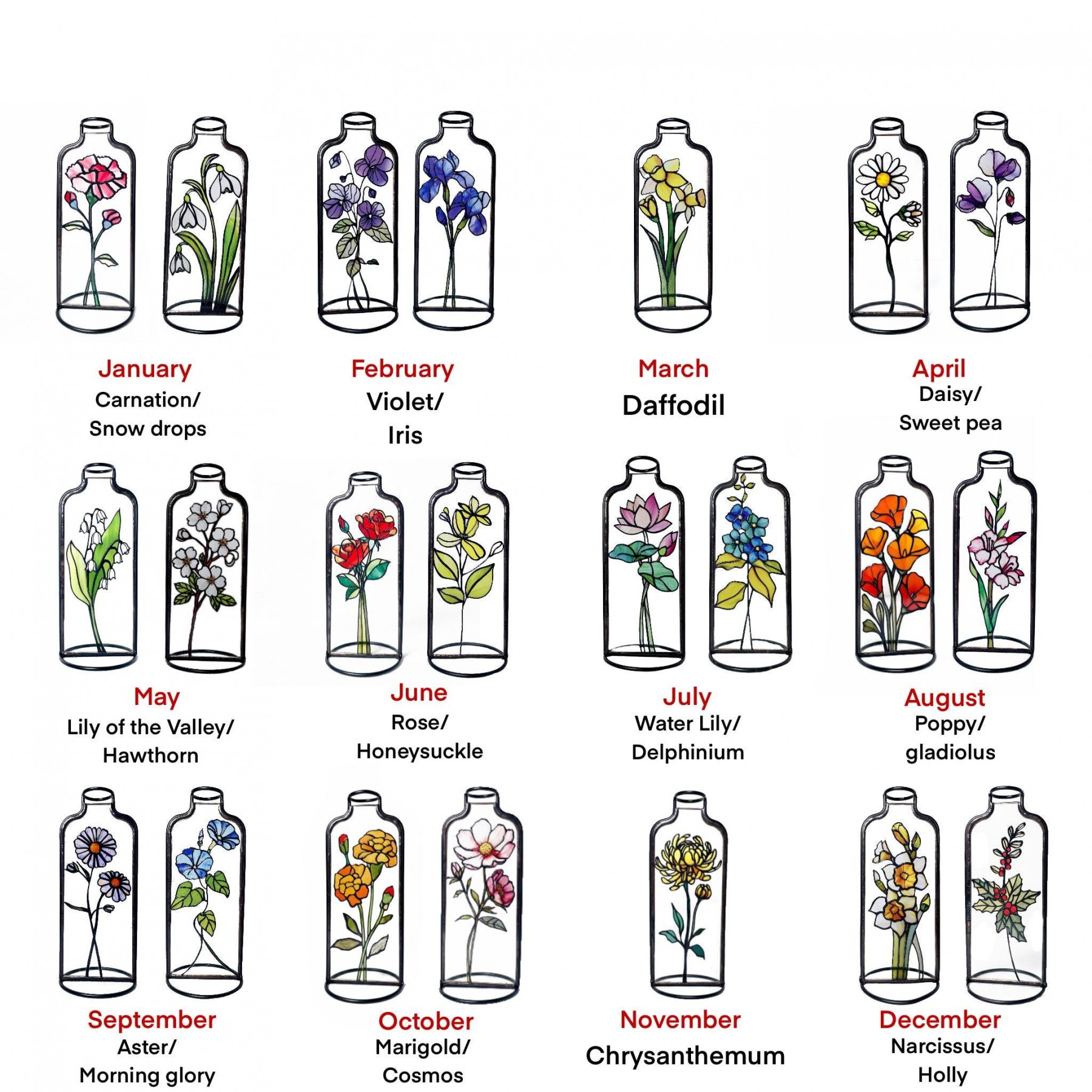 Celebrate the people you love with our stunning, personalized Birth Flower Suncatcher Vases. This unique piece of home decor combines the beauty of stained glass art with the functionality of a minimal, modern vase.