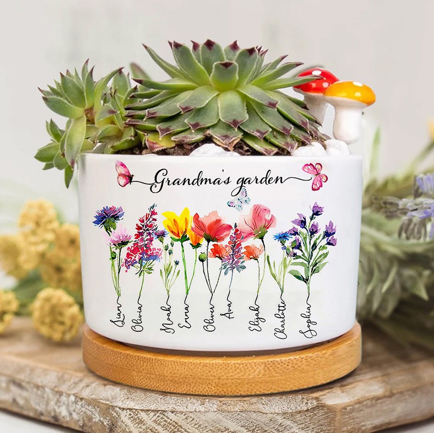 Custom Birth Month Flower Plant Pot Grandma's Garden Plant Pot Mother's Day Gift