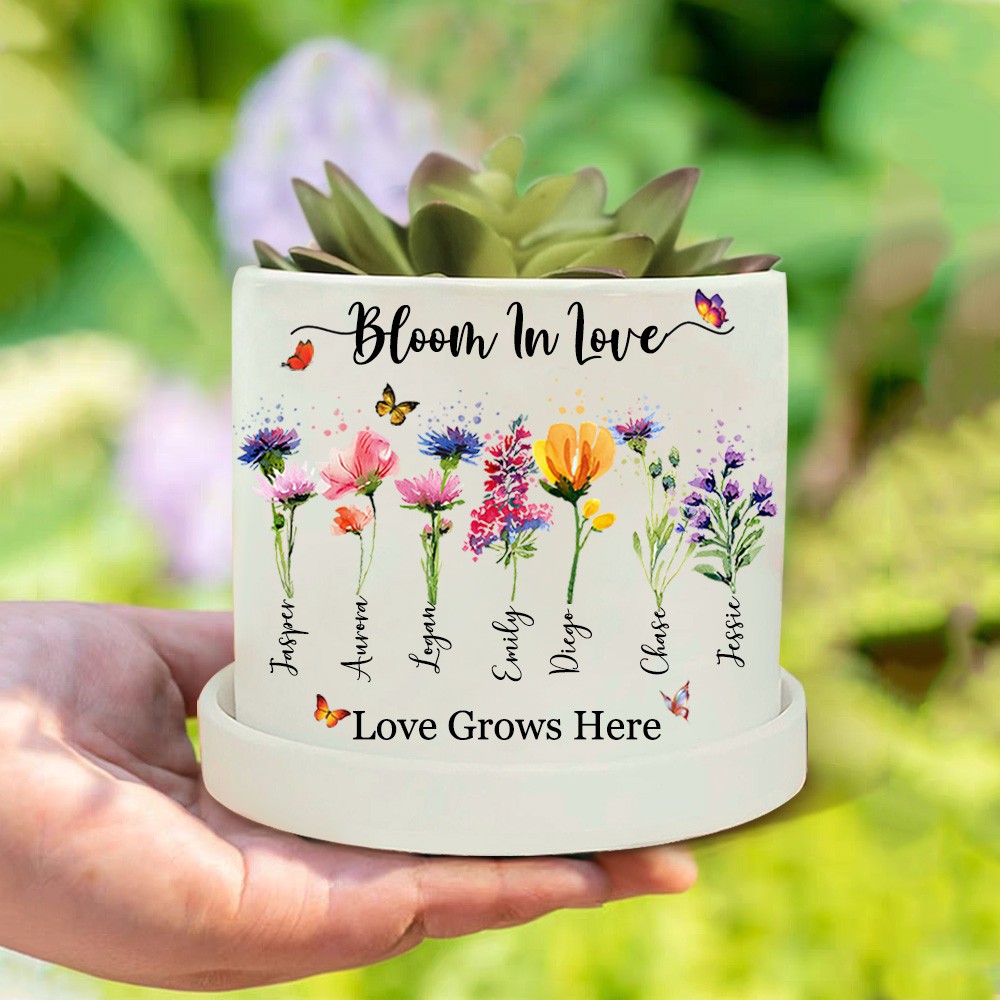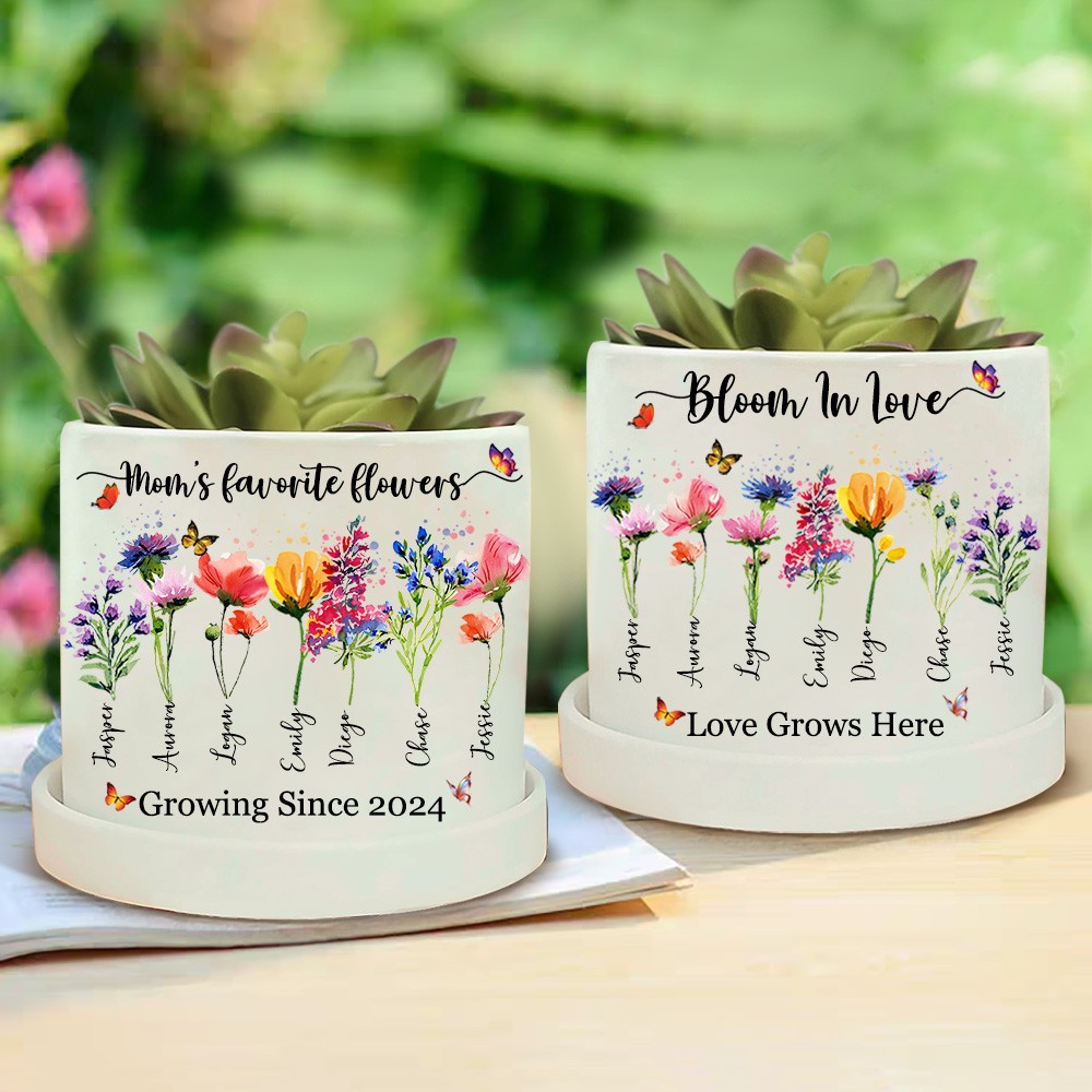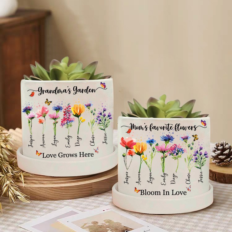 Custom Birth Month Flower Plant Pot Grandma's Garden Plant Pot Mother's Day Gift