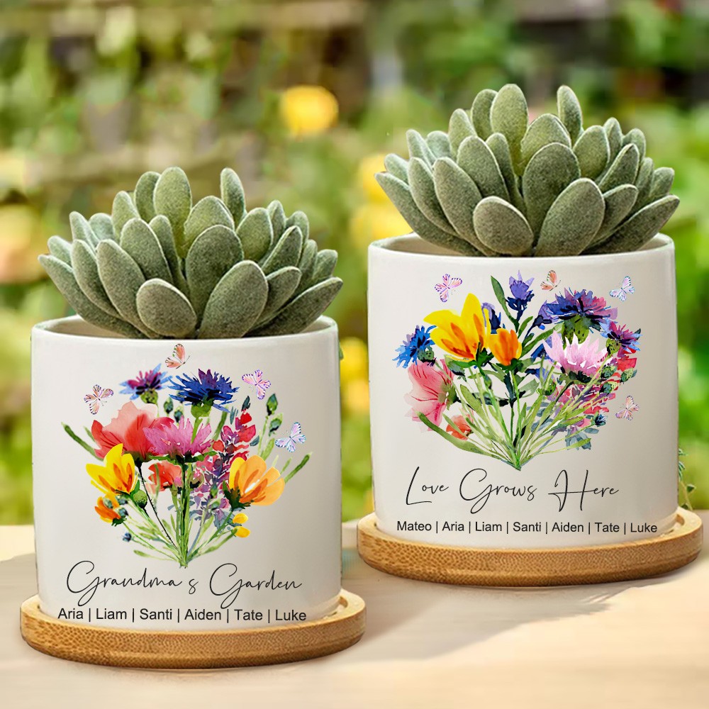 Custom Birth Month Flower Plant Pot Grandma's Garden Plant Pot Mother's Day Gift