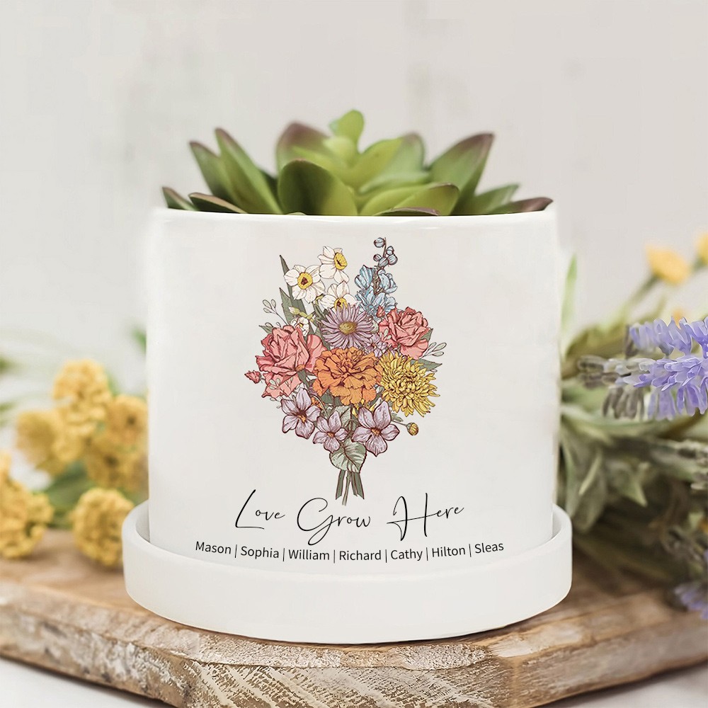 Custom Birth Month Flower Plant Pot Grandma's Garden Plant Pot Mother's Day Gift