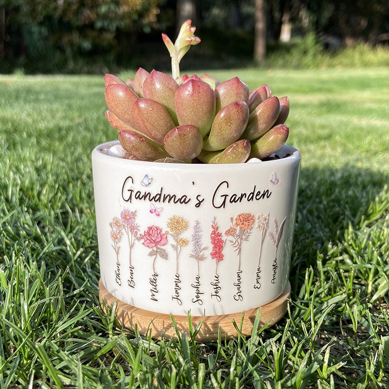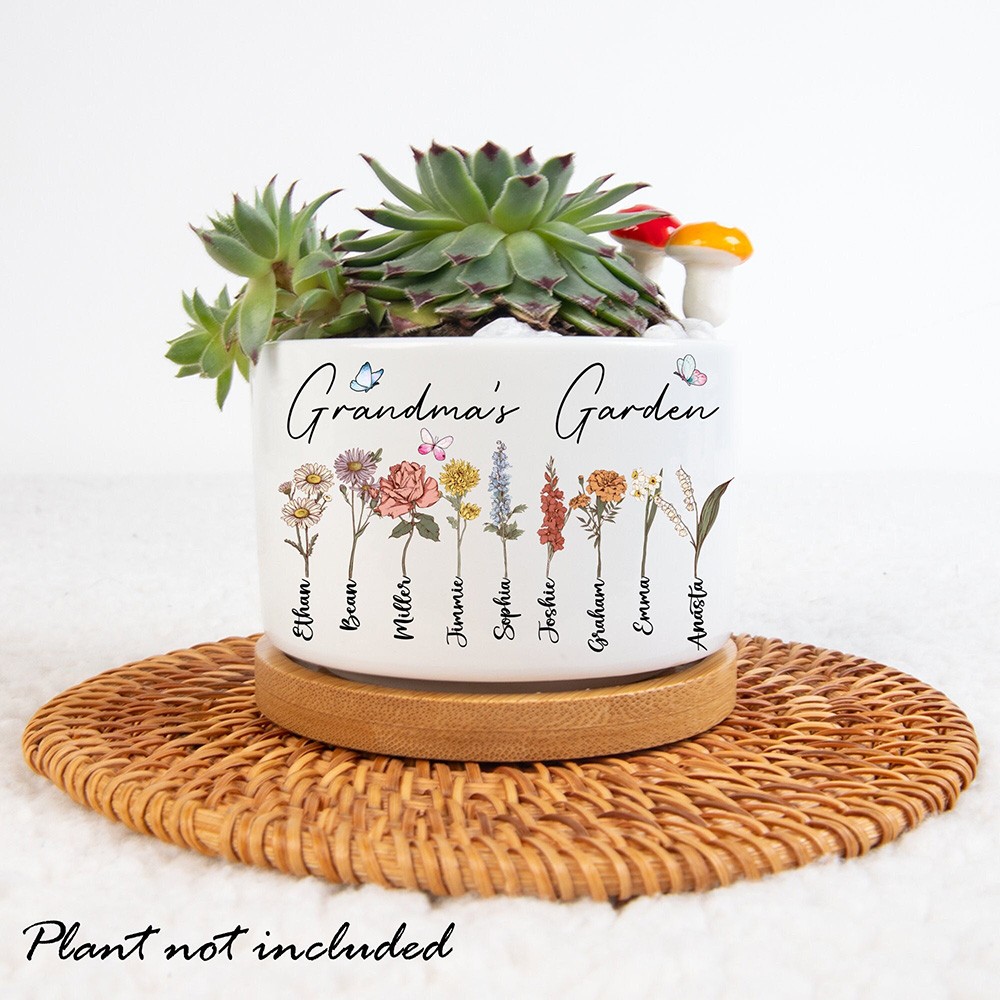 Custom Birth Month Flower Plant Pot Grandma's Garden Plant Pot Mother's Day Gift