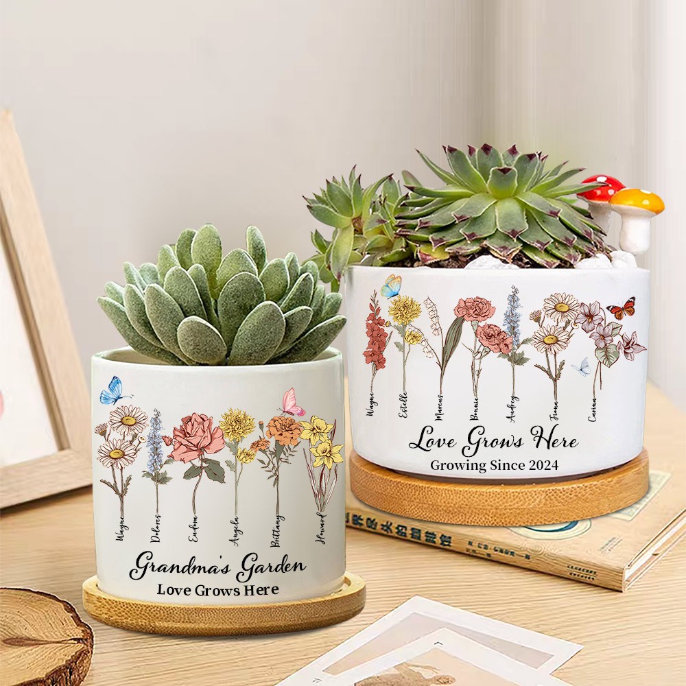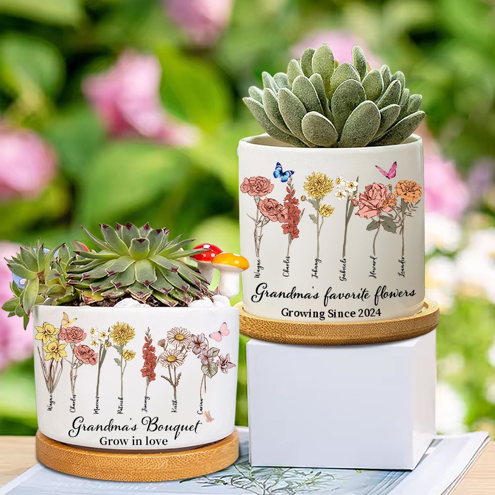 Custom Birth Month Flower Plant Pot Grandma's Garden Plant Pot Mother's Day Gift