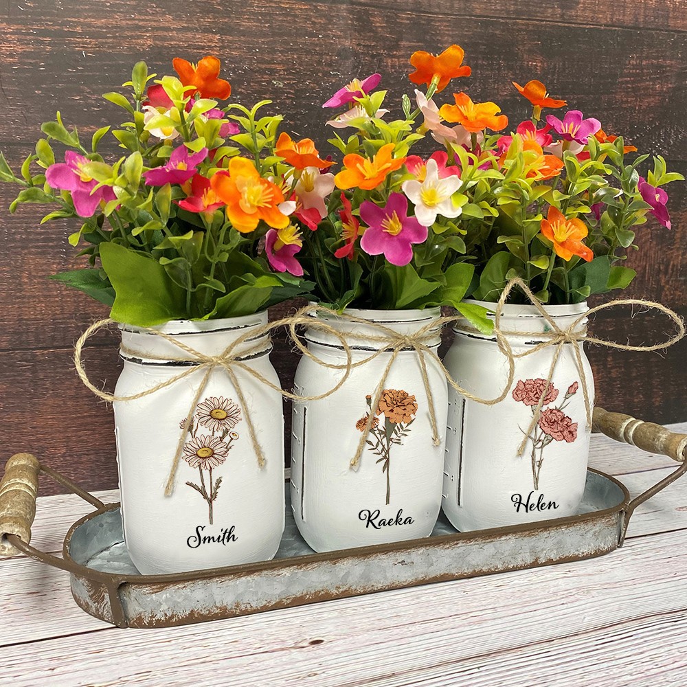 Personalized Birth Flower Mason Jars Mother's Day Gift