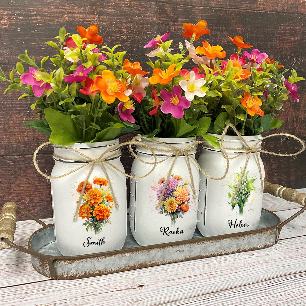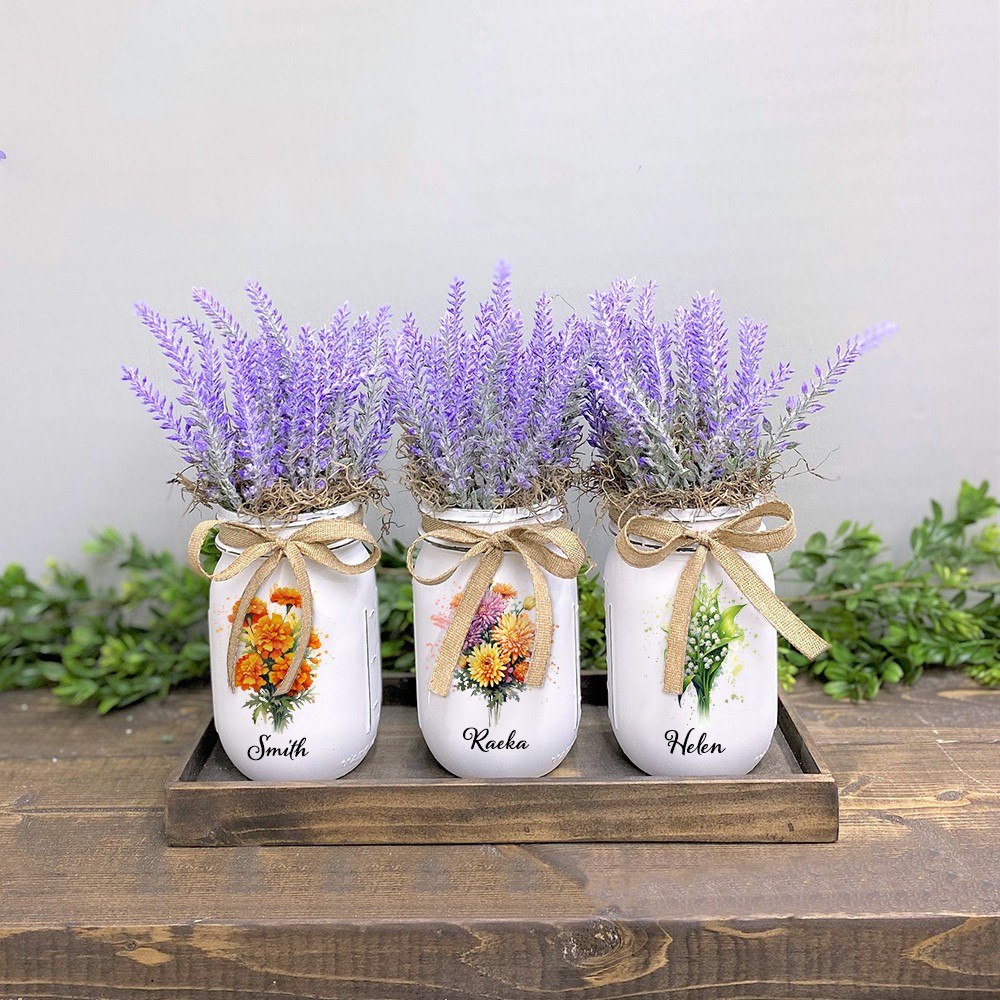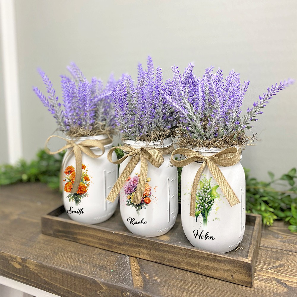 Personalized Birth Flower Mason Jars Mother's Day Gift