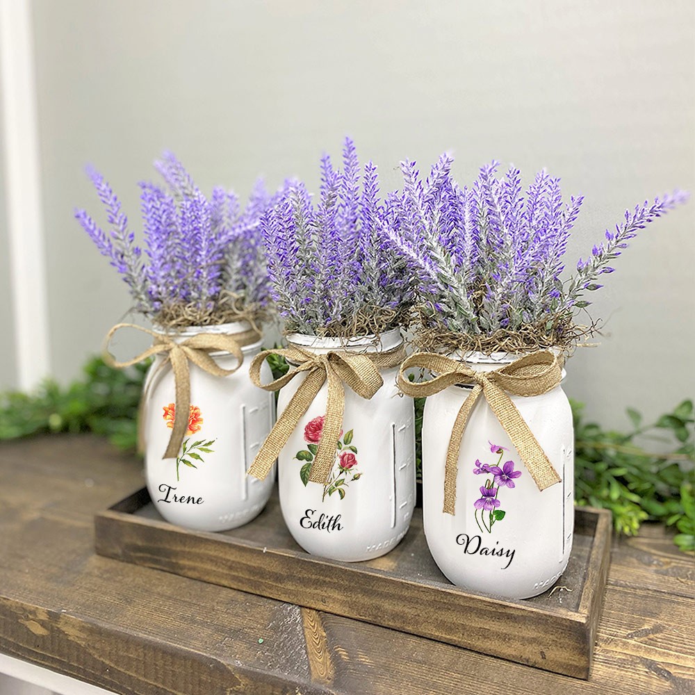 Personalized Birth Flower Mason Jars Mother's Day Gift