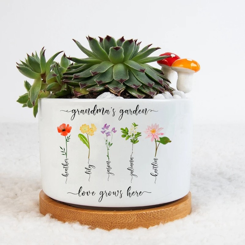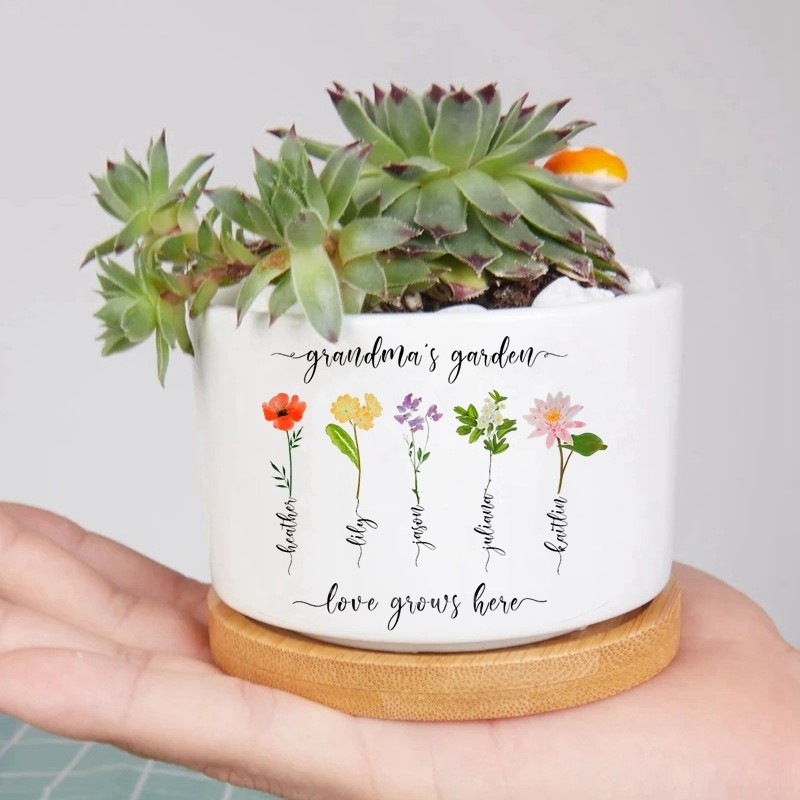 Custom Birth Month Flower Plant Pot Grandma's Garden Plant Pot