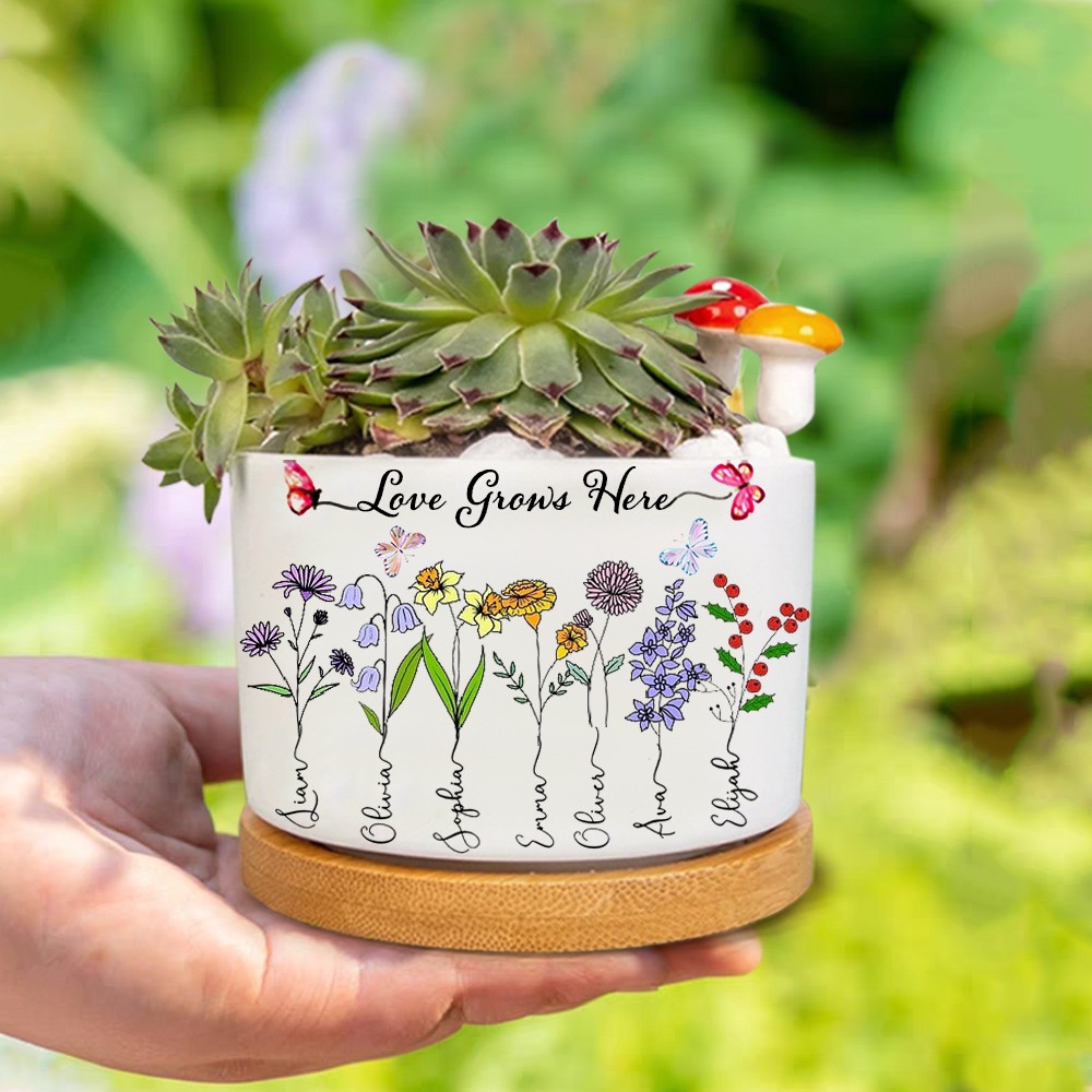 Custom Birth Month Flower Plant Pot Grandma's Garden Plant Pot