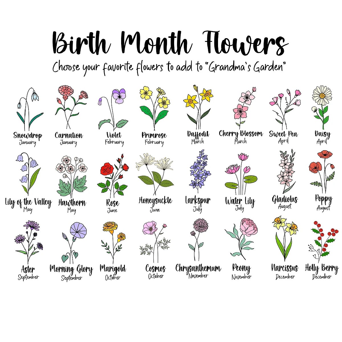 This beautiful birthday flower pot is the perfect gift for mom on Mother's Day, flowers of the month can also be customized and will represent flowers for all of Mother's family.
