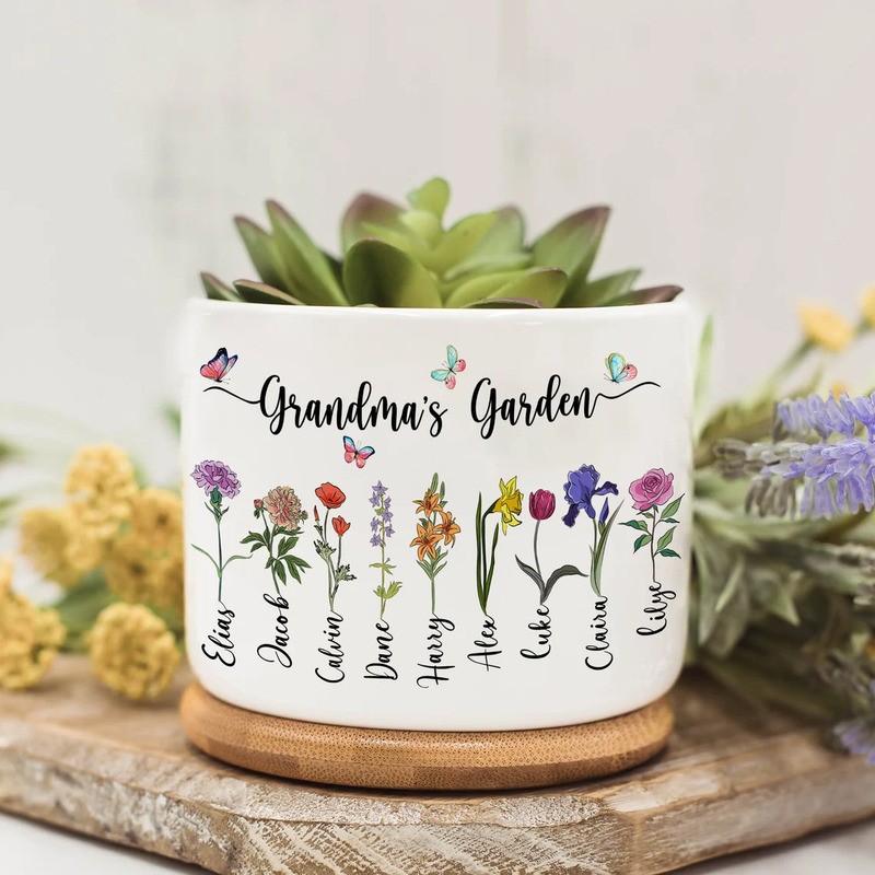 Custom Birth Month Flower Plant Pot Grandma's Garden Plant Pot