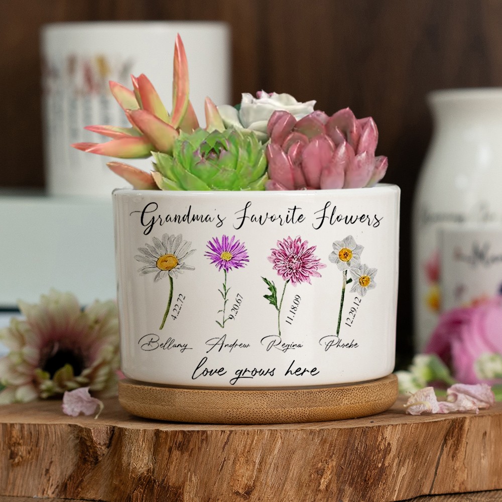 Custom Birth Month Flower Plant Pot Grandma's Garden Plant Pot