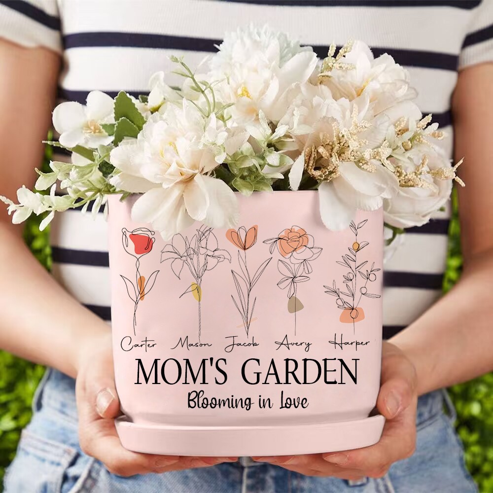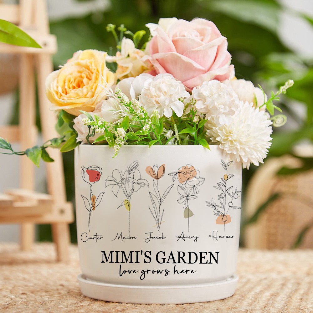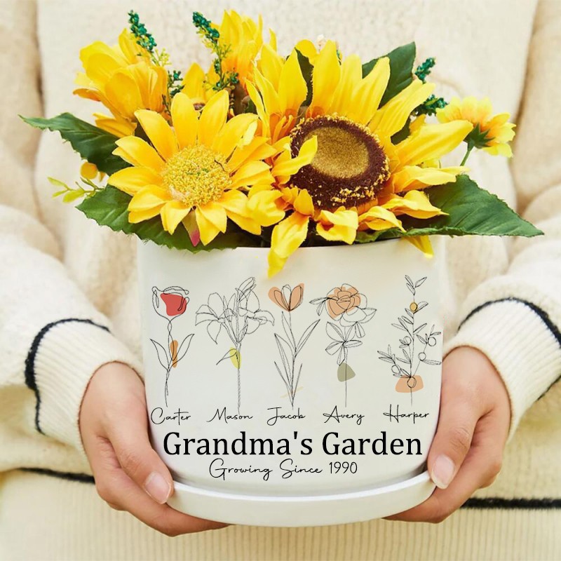 Big Custom Birth Month Flower Plant Pot Grandma's Garden Plant Pot Mother's Day Gift