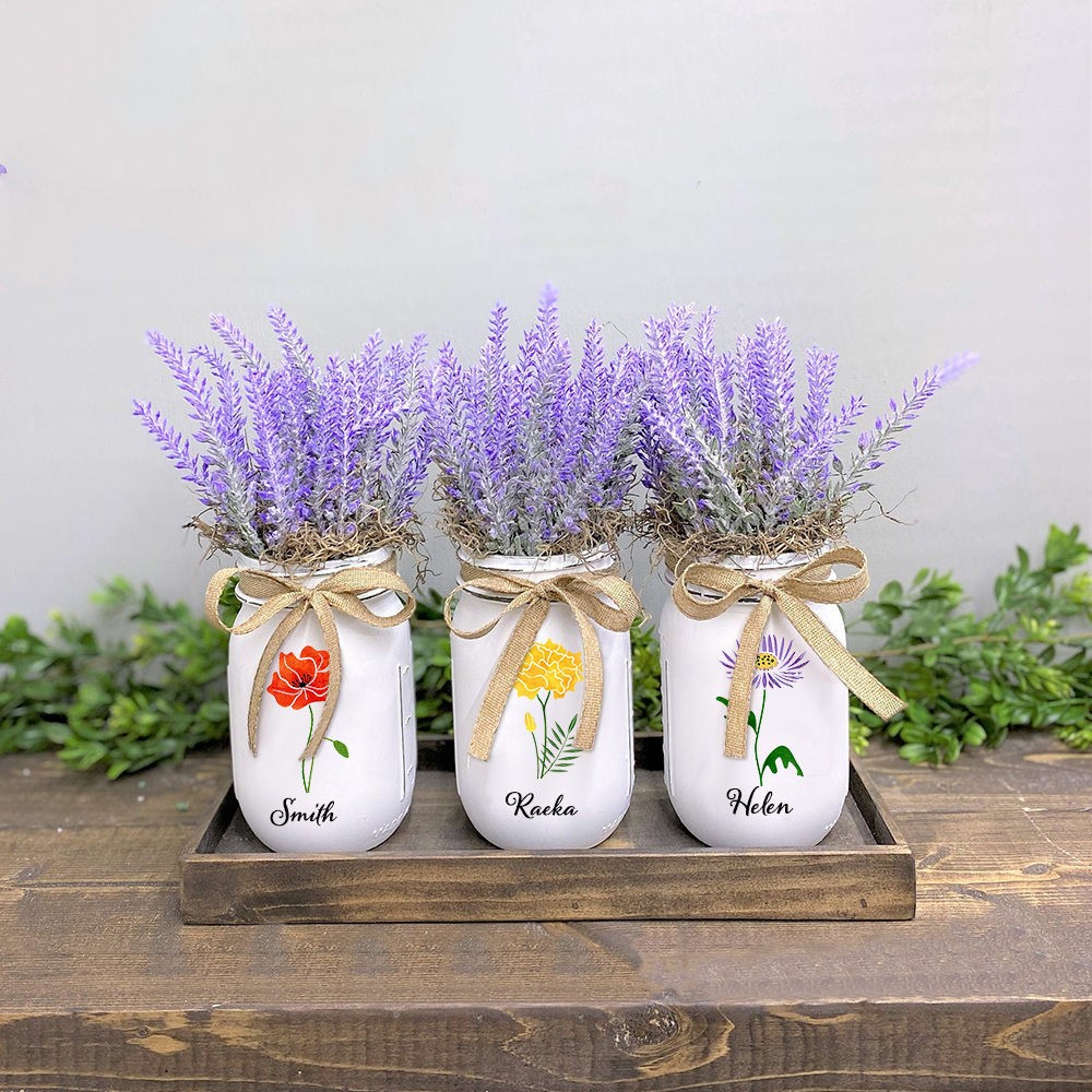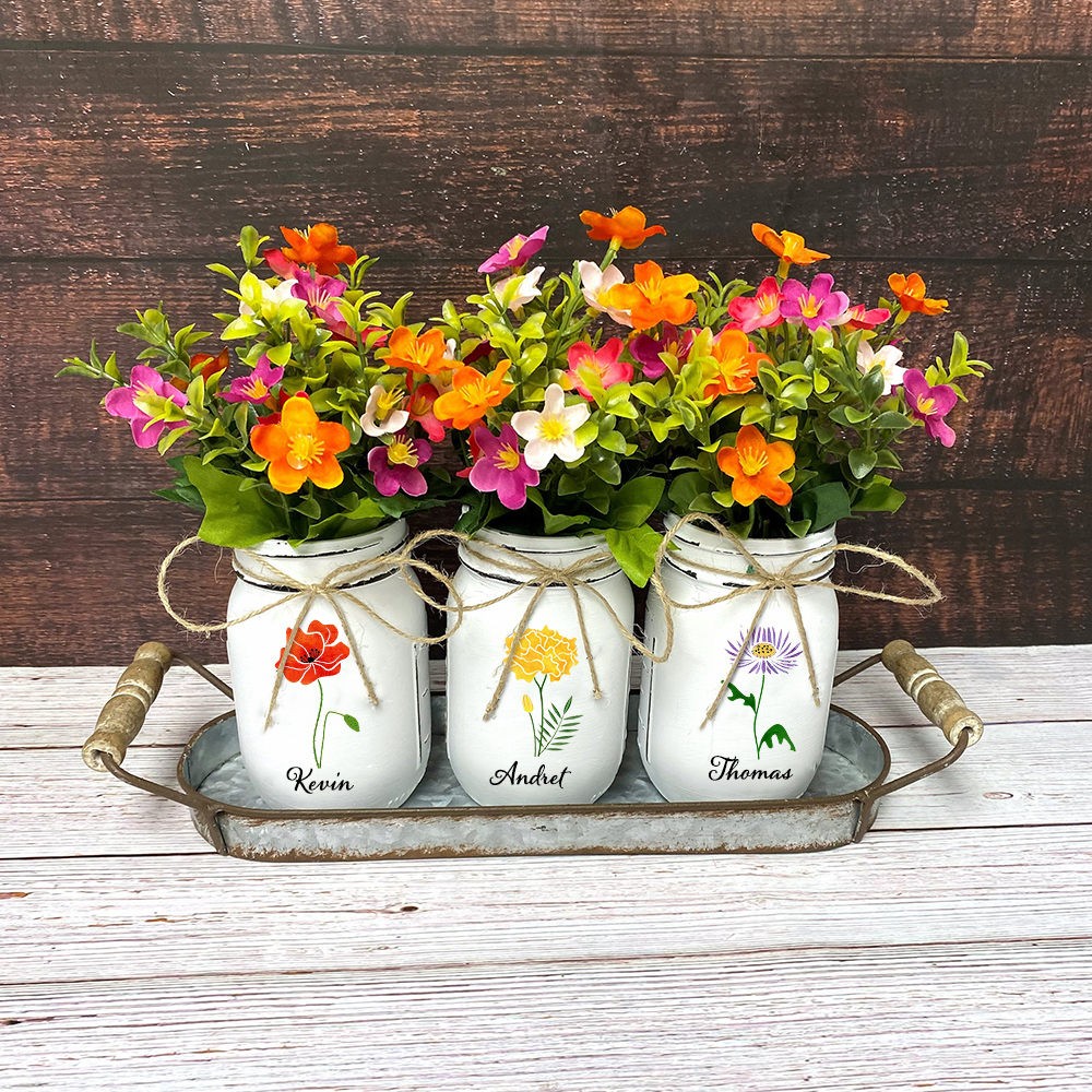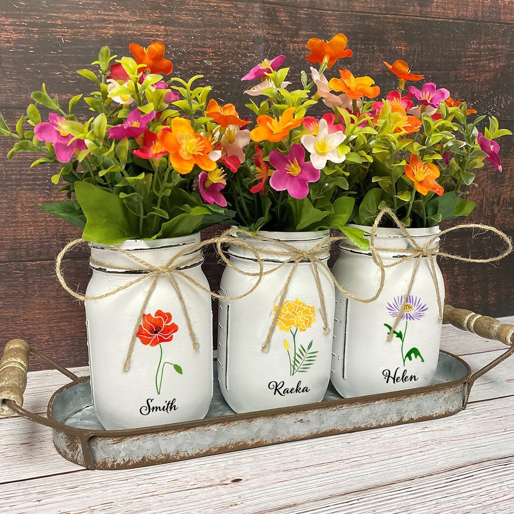 Personalized Birth Flower Mason Jars Mother's Day Gift
