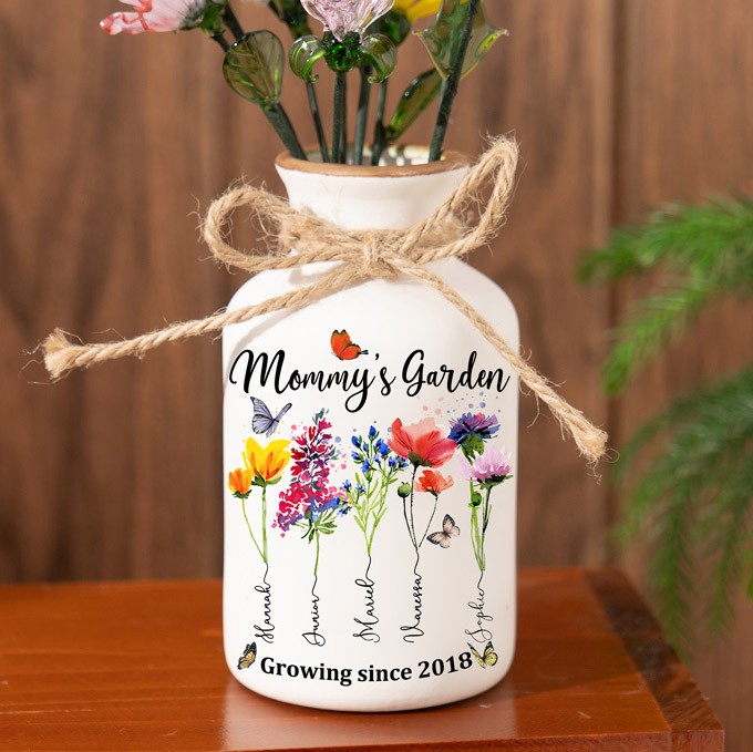 (Only Vase)Custom Family Garden Birth Flower Vase With Grandchildren Name For Mother's Day Gift