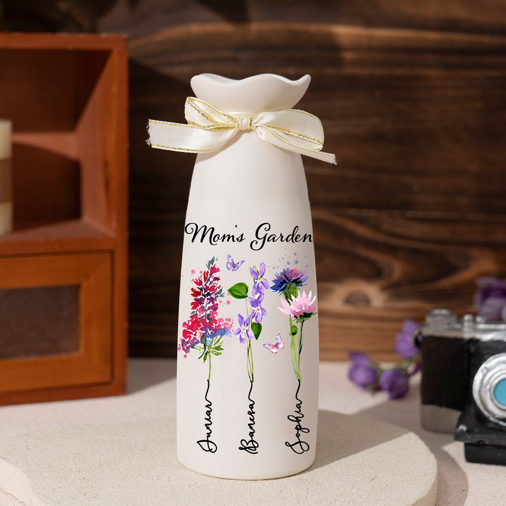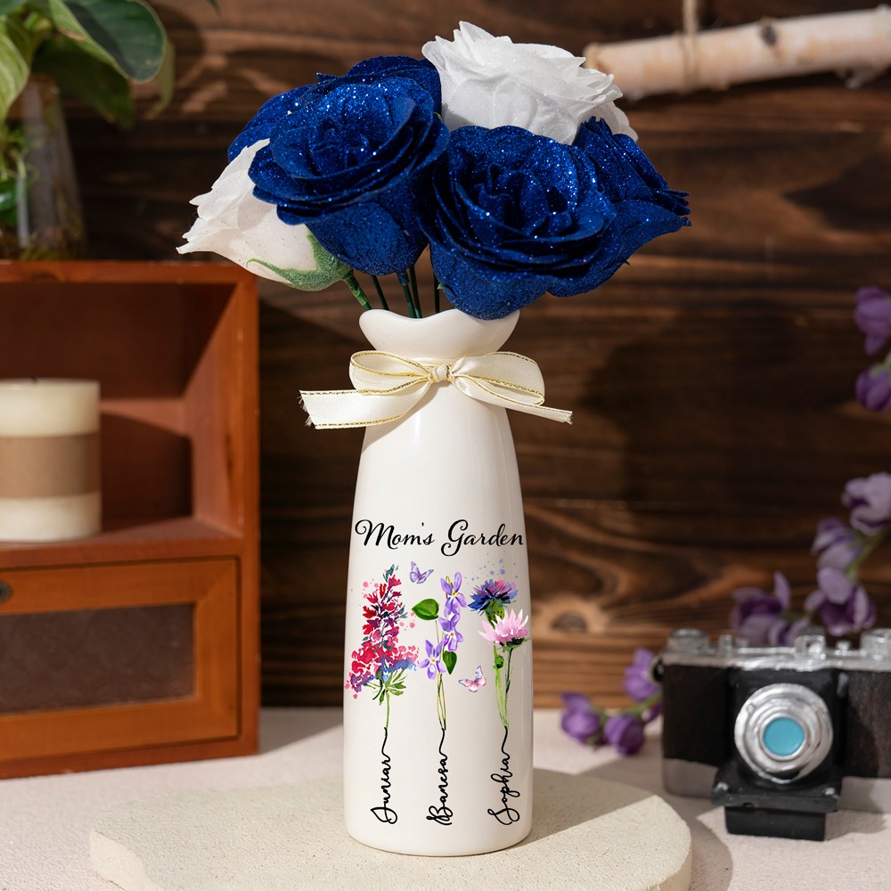 (Only Vase)Custom Family Garden Birth Flower Vase With Grandchildren Name For Mother's Day Gift