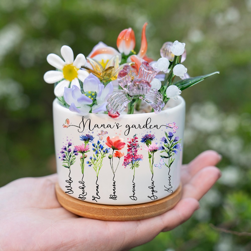 Custom Glass Birth Month Flower with Custom Flower Pot Mother's Day Gift