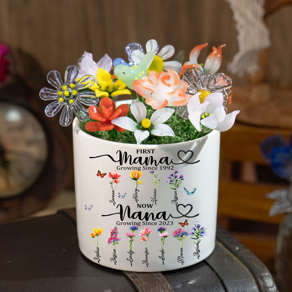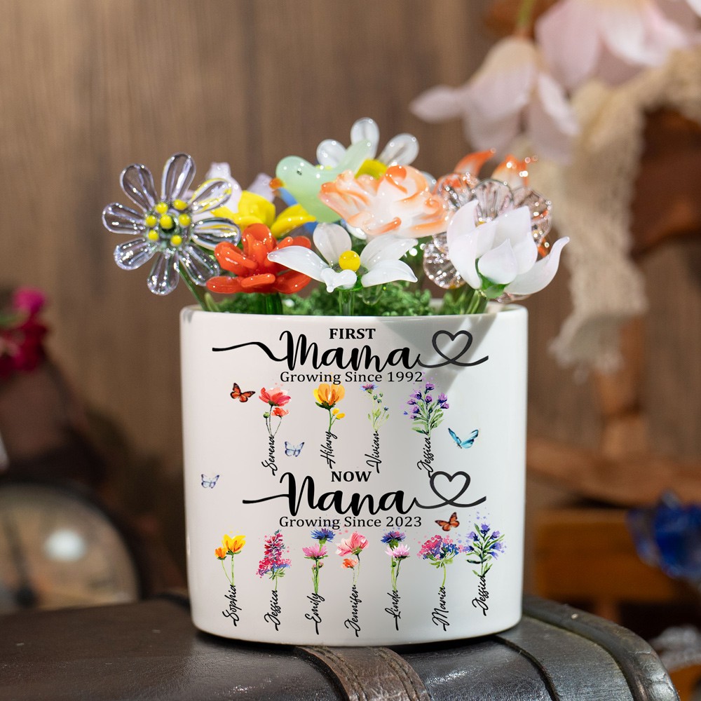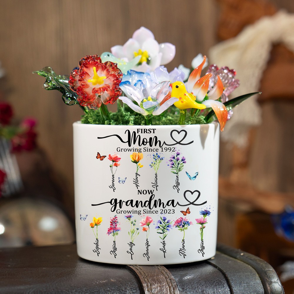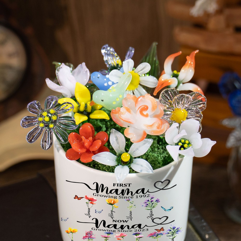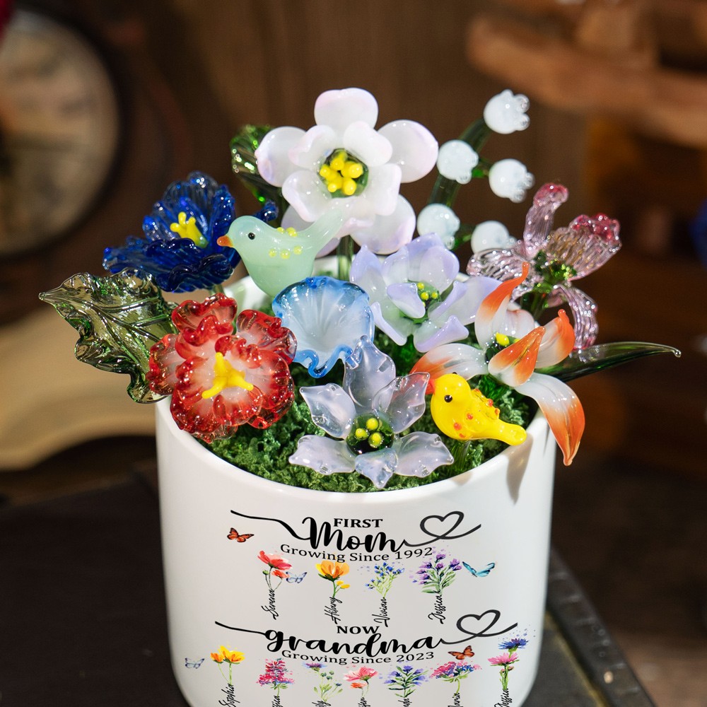 Custom Glass Birth Month Flower with Custom Flower Pot Mother's Day Gift