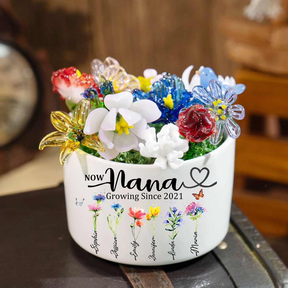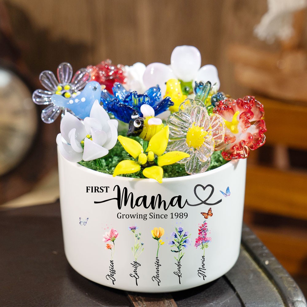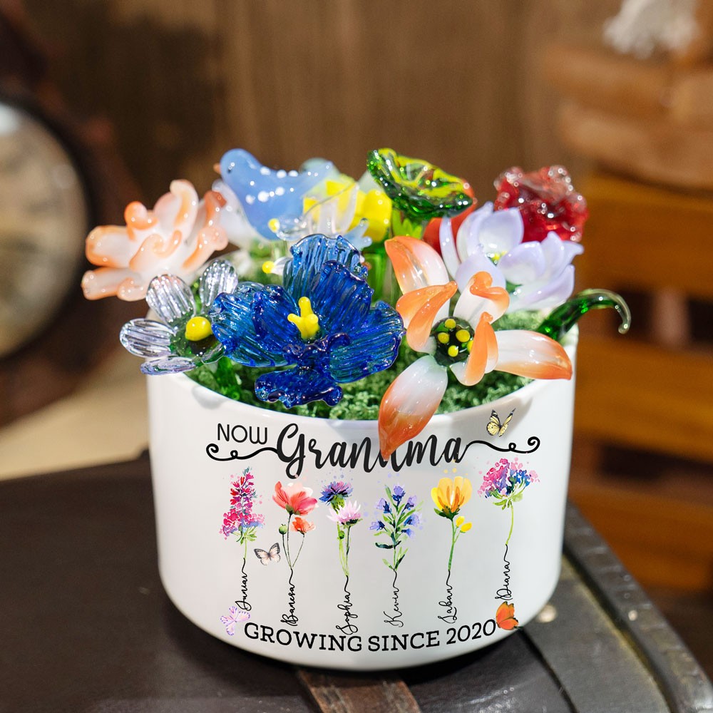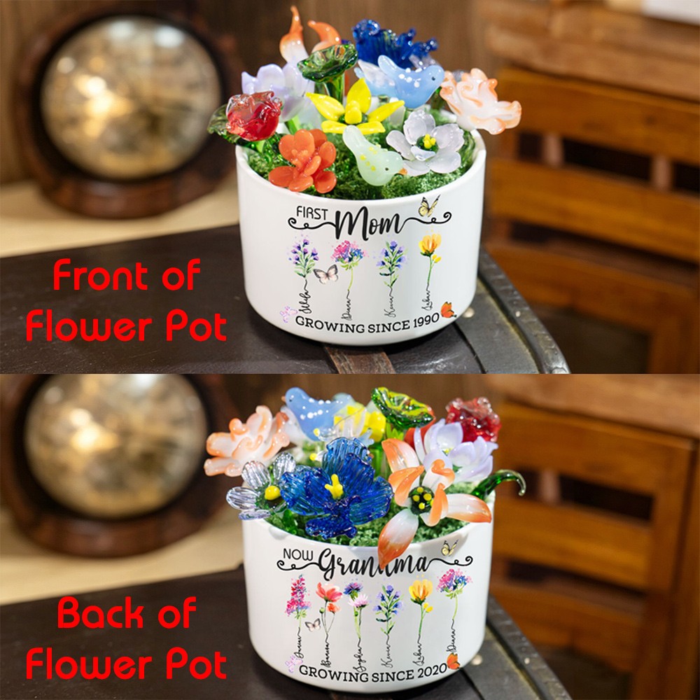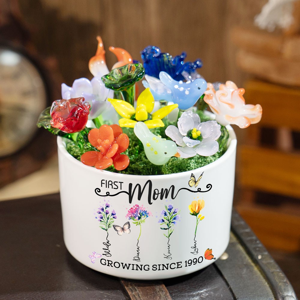 Custom Glass Birth Month Flower with Custom Flower Pot Mother's Day Gift