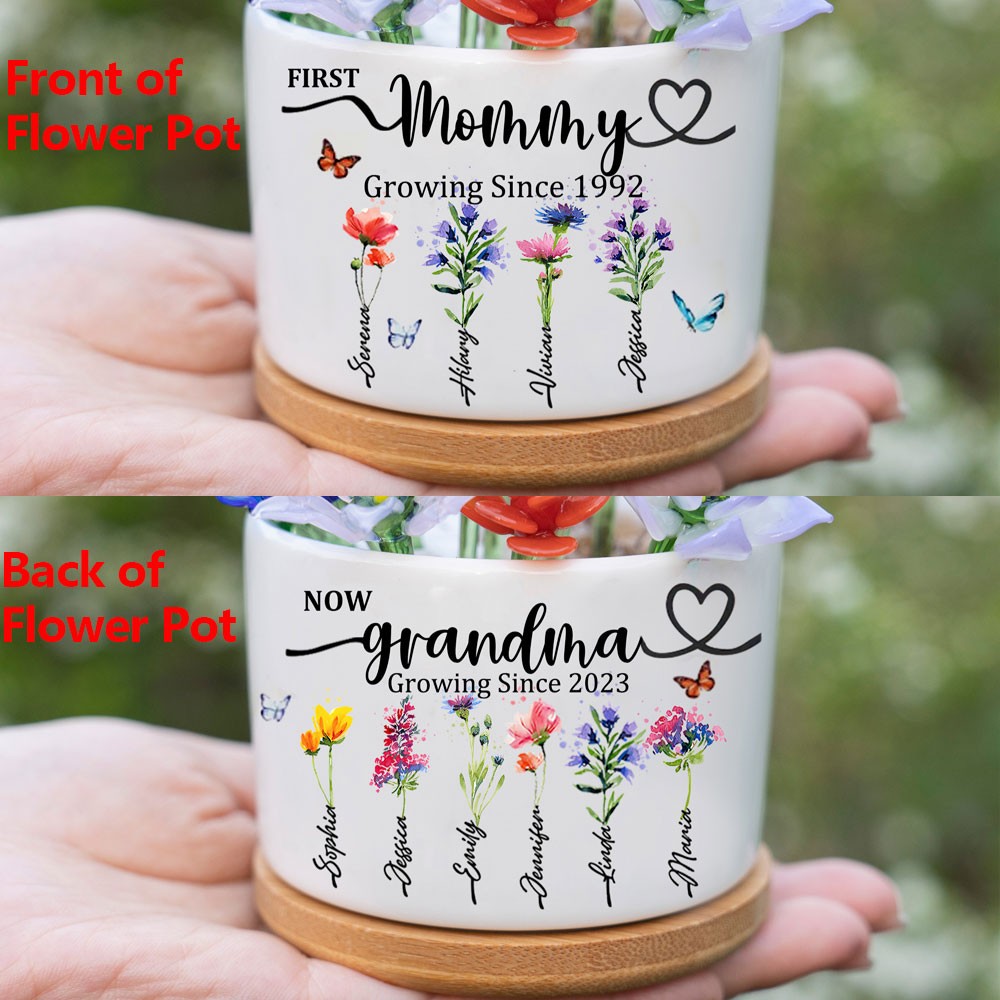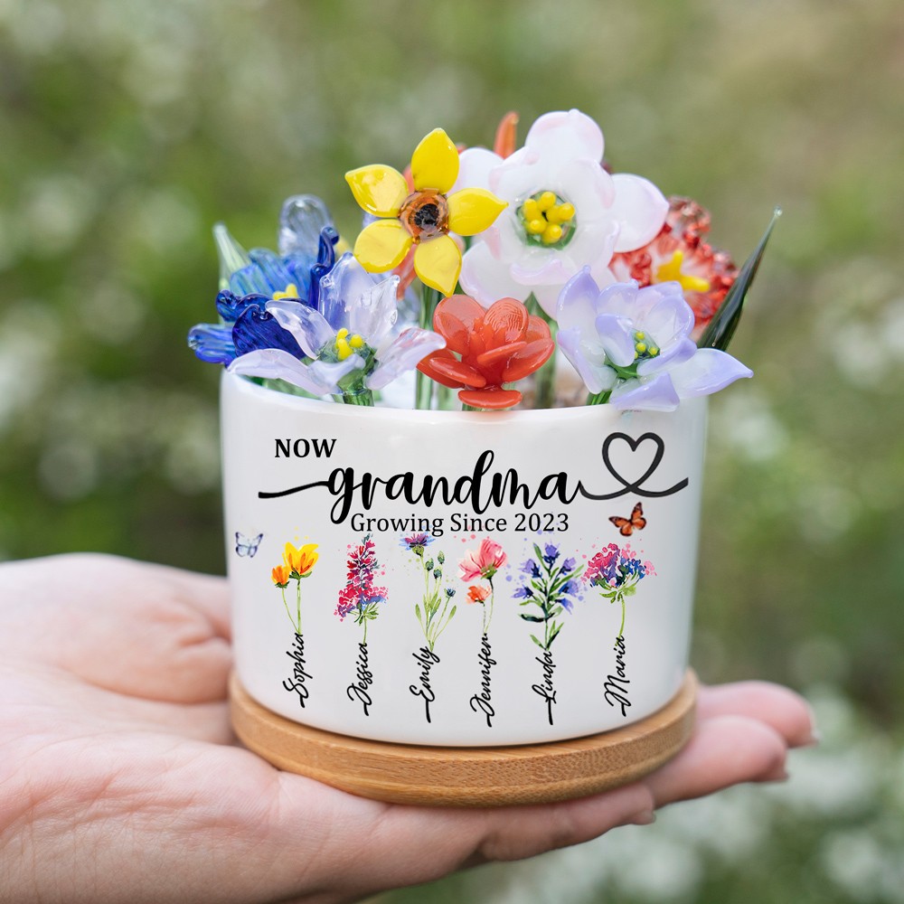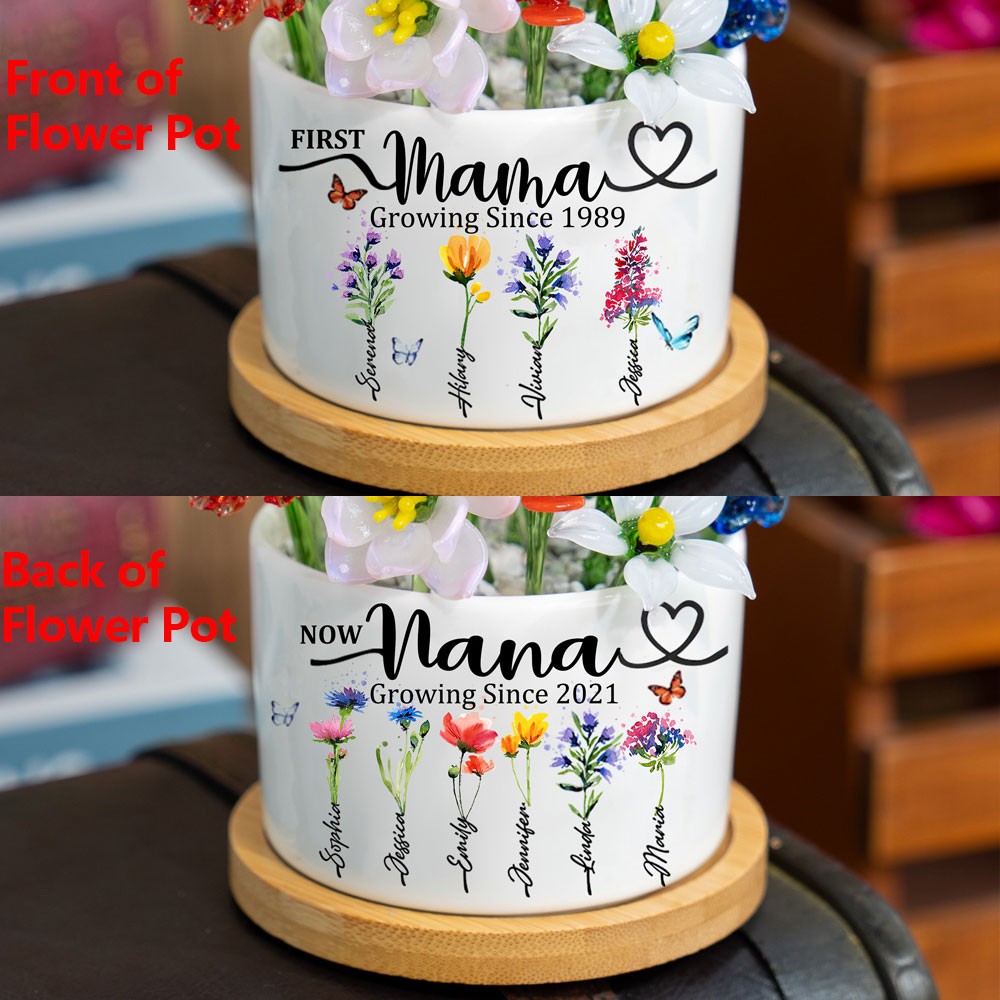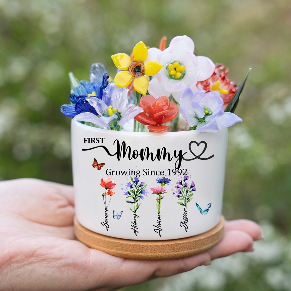 Custom Glass Birth Month Flower with Custom Flower Pot Mother's Day Gift