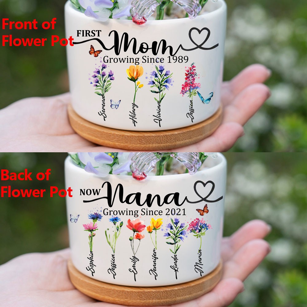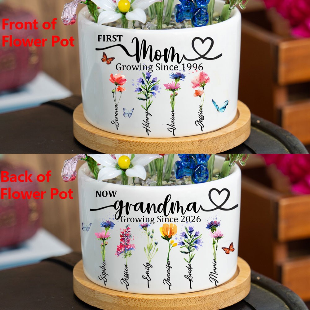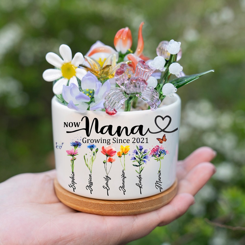 Custom Glass Birth Month Flower with Custom Flower Pot Mother's Day Gift