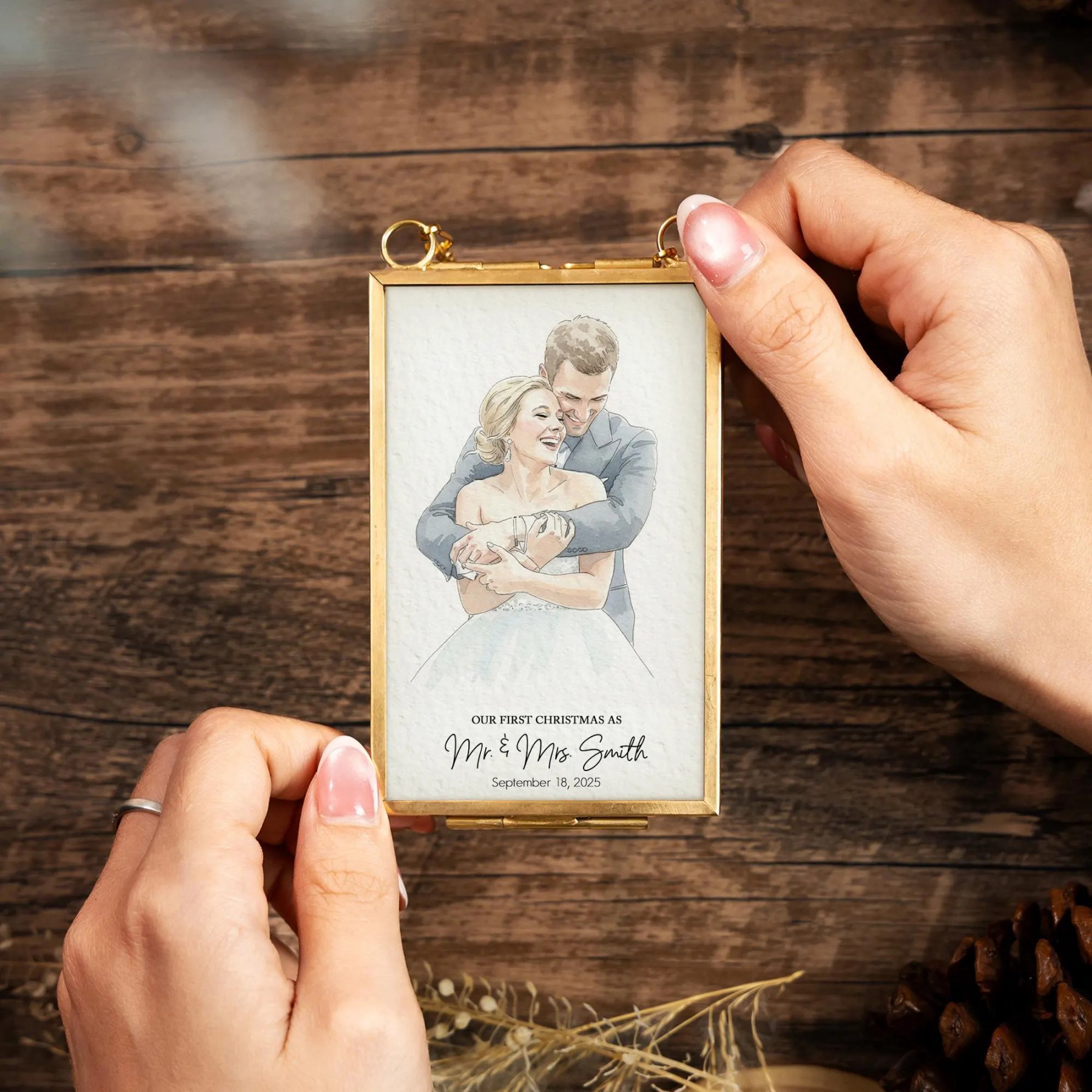 Custom Watercolor Portrait Frame Ornament Unique Family Photo Christmas Gifts