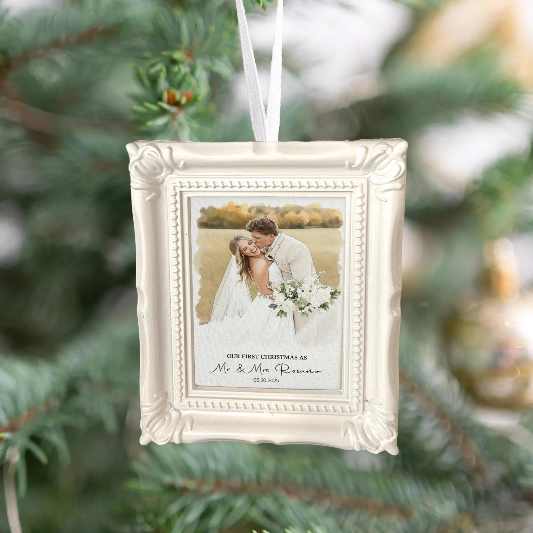 Custom Watercolor Portrait Frame Ornament Unique Family Photo Christmas Gifts