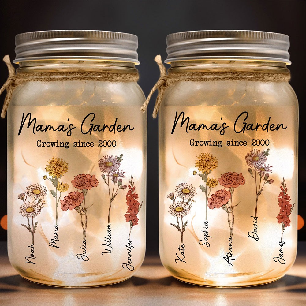 Personalized Mama's Garden Mason Jar Light Mother's Day Gift